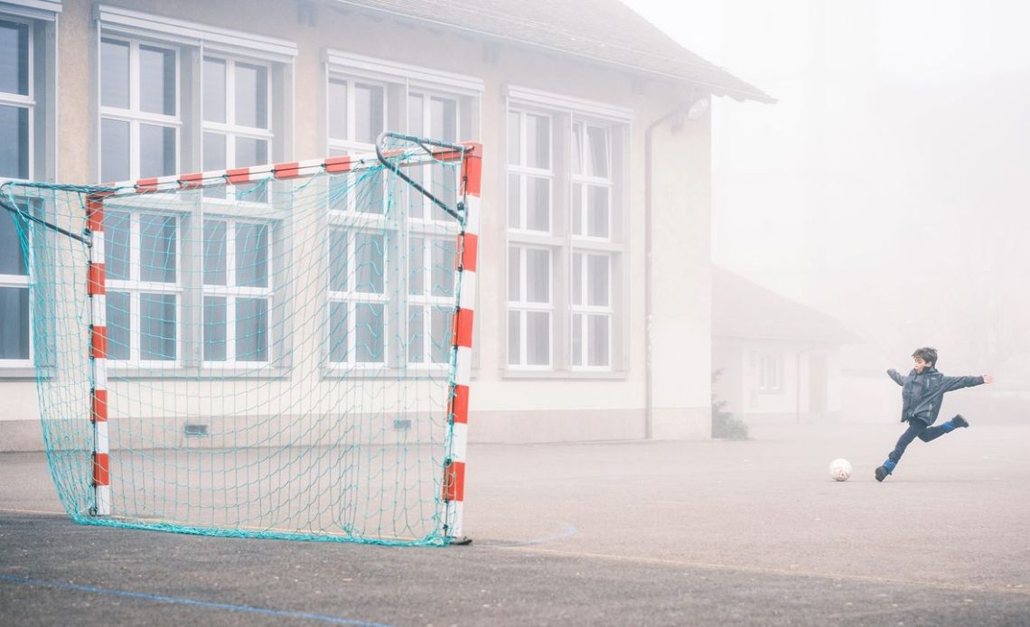 “On cracked schoolyard asphalt, in the chill of a misty afternoon, a child faces an empty goal. Here, football is stripped back to its core: joy, possibility and the courage to believe. Chasing Tomorrow reflects the universality of grassroots sport, where ambition is born in quiet moments as fleeting as fog.”