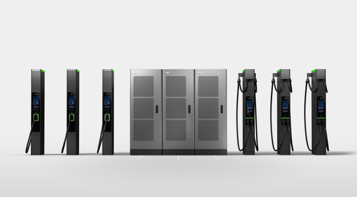 The system can support up to 24 charge points and expand in 400 kW increments using up to three interconnected power cabinets.