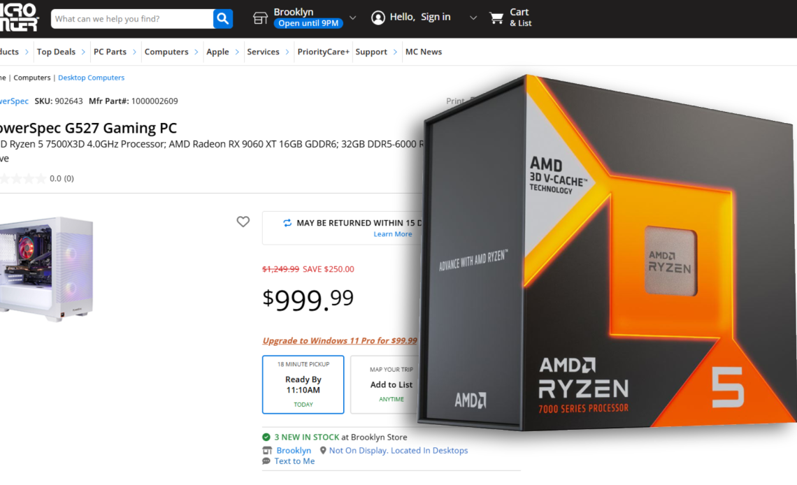 I asked a Micro Center representative if the new Ryzen 5 7500X3D would be made available as a separate purchase for PC builders, but they couldn’t share any additional information beyond the single pre-built PowerSpec desktop.