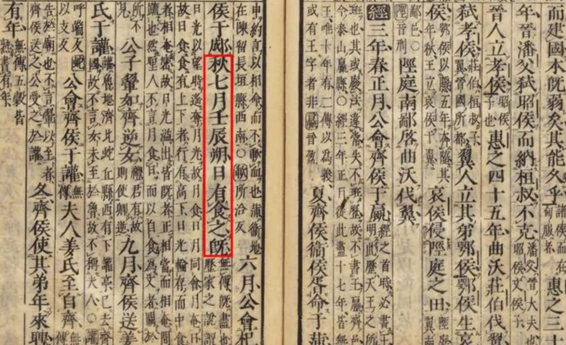 The eclipse in question took place on July 17, 709 BCE, according to a chronicle titled “Spring and Autumn Annals.” The caveat here is that this record was compiled around two or three centuries after the eclipse happened. The chronicle comes from the court of Lu Duchy, a vassal state that existed during the Zhou dynasty.