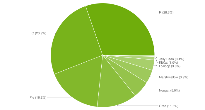 The last monthly release was in October 2018 and May 2019 saw the first updated figures since then. Google issued new stats in April 2020, November 2021, and May 2022. Google now no longer offers Android distribution info on any official website, instead only showing the data in Android Studio. The “Create New Project wizard” gives app developers a chart to see what OS release they should target to get the most users, while balancing what features they can take advantage of.