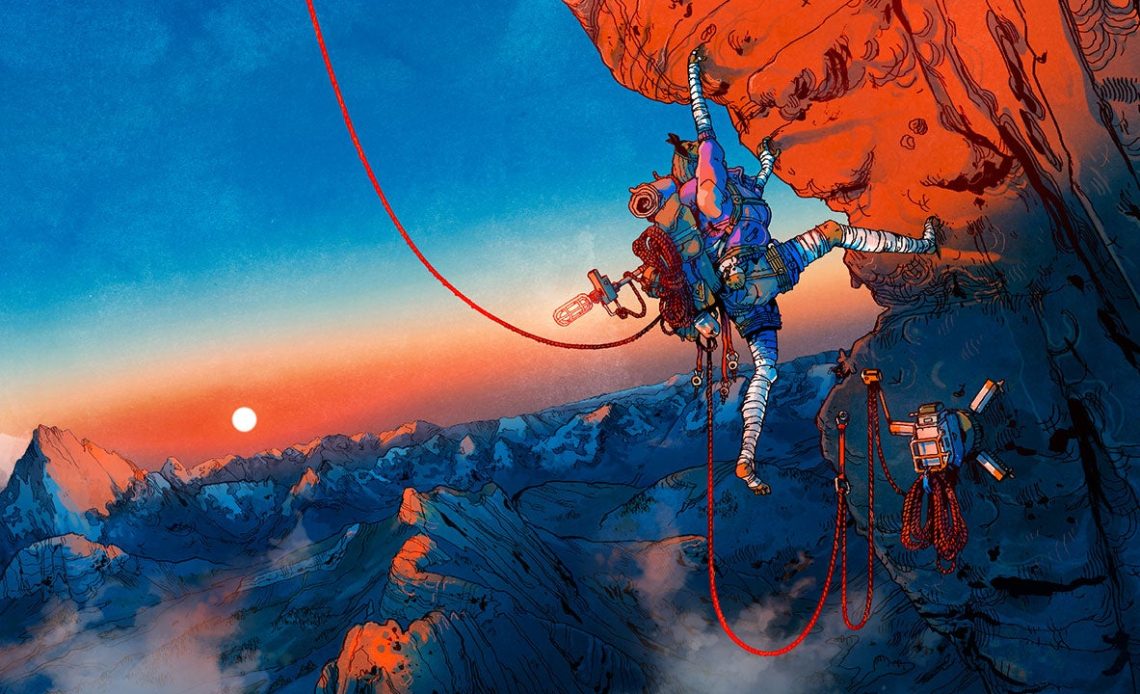 As I ascend, I also learn about Aava, about the kind of person she is, about who someone driven to do something like this must be. Climbot relays messages she receives as she climbs. From her agent, Chris, who goes from begging her to send him photos to appease their sponsors to just begging her to let him know she’s all right. From her friends, who sing her happy birthday. From her partner, Noami, who does not understand why she is doing this, who reminds her of the cost of what she’s attempting. Aava mostly ignores them. Sometimes they make her smile, make her sad. Sometimes, she is angry with Climbot for playing them.