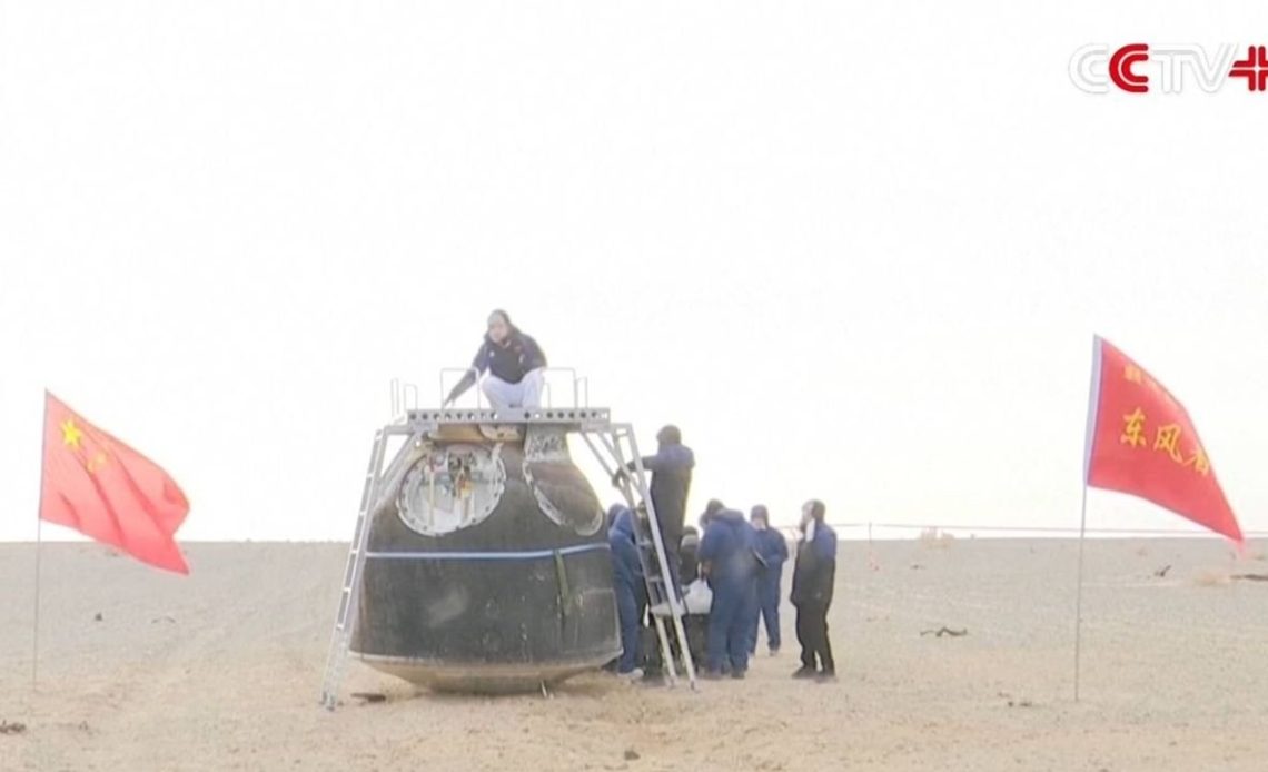 On-site inspection of the returned capsule on Monday found that its exterior was “generally normal” and the items secured inside the vessel were in good condition, the China National Space Administration (CNSA) said.