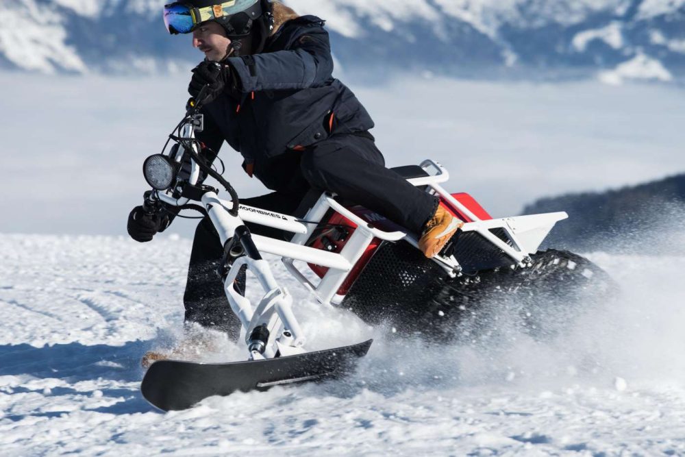 It may be a bit of a misnomer (it’s not meant for the moon, nor is it a bike), but Moonbikes’ wild-looking new electric snow vehicle sure is turning heads.
