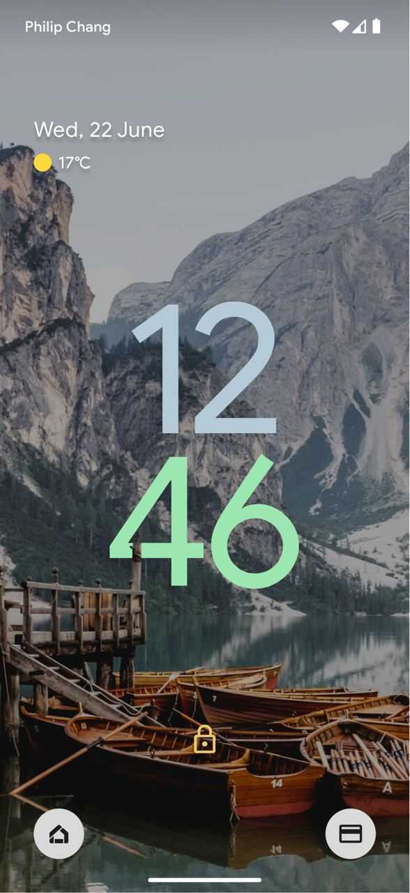 Besides the background, the clock (when there are no notifications) is literally the biggest attraction and it uses Dynamic Color to adapt to your set wallpaper.