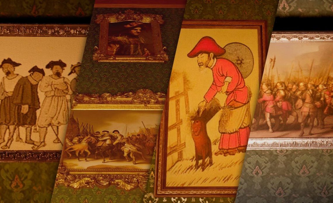 A number of threads have popped up around social media of players questioning the human authenticity of certain art assets, specifically signs and paintings around the game. There’s this painting of two swordsman with a lot of odd angles: