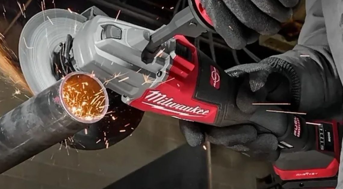 Milwaukee Tool’s new M18 FUEL dual-trigger 4 1/2″-6″ electric angle grinder makes up to 5.8 hp – that’s the equivalent of 70 cc of ICE power to deliver faster cutting, fewer stalls, and up to 135 cuts on 1/2″ rebar on a single battery charge.