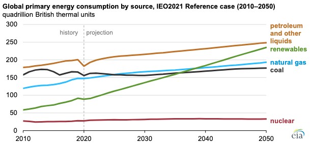 The US Energy Information Administration (EIA) this morning released its “International Energy Outlook 2021” report. What’s important to stress is that this report “assumes current laws and regulations.”