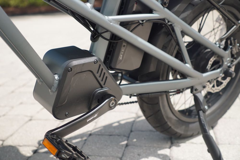 One other small note: you might notice what looks like a mid-drive motor mounted near the pedals. That’s a decoy. It’s not really a motor, but instead seems to be where they stashed the controller and other electronics/wiring.