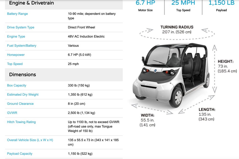 For comparison, even an electric GEM, which is basically a golf cart, weighs about 1,350 lbs: