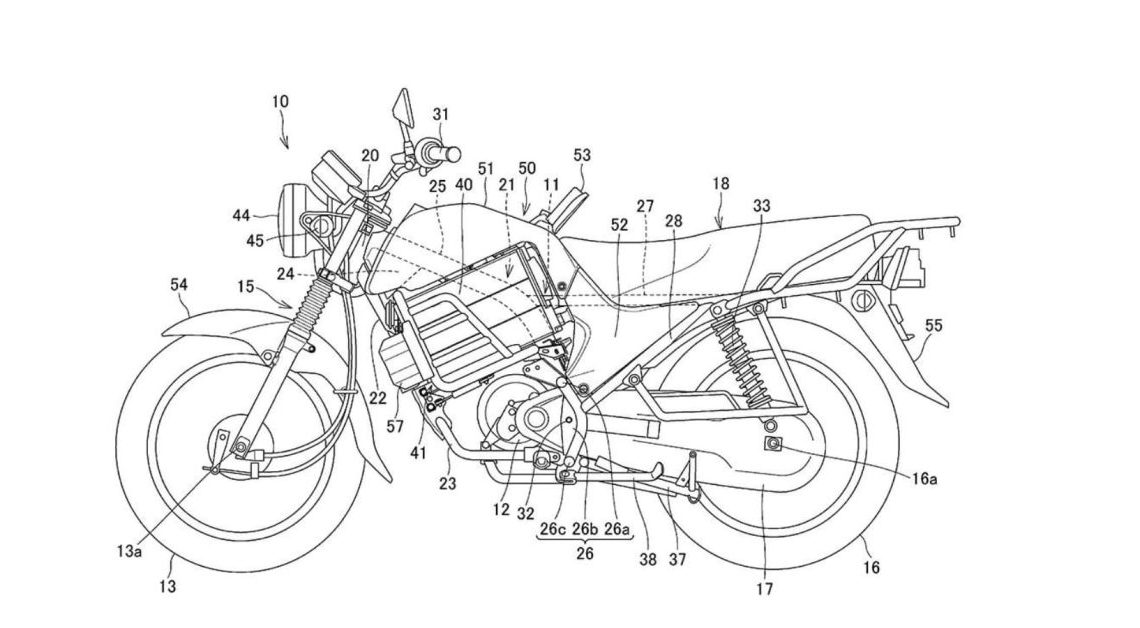 It’s similar in form and function to a previous patent we saw for a Honda electric motorcycle based on the same frame as the lightweight Honda Shine 100. This time though, the batteries feature a key difference.