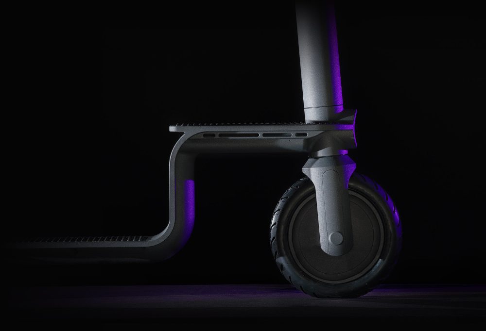 That’s not a digital glitch you’re seeing – the deck on the Unicorn scooter was designed with that step feature on purpose to open a world of cargo and utility possibilities.