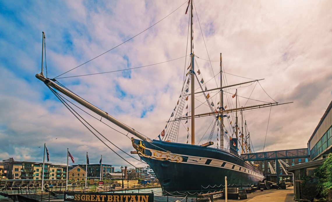 However, the golden age of steamships was the Victorian era (approx 1820-1914), with one of the most famous being the SS Great Britain, designed by Isambard Kingdom Brunel and launched in 1843. Fitted with screws for propulsion, cabins, kitchens, promenade deck and a sumptuous dining saloon, it was the first great luxury liner and sailed between Bristol and New York. She was also the first iron-hulled steamer to cross the Atlantic, in 1845, fielded a crew of 120 and could carry up to 360 passengers.