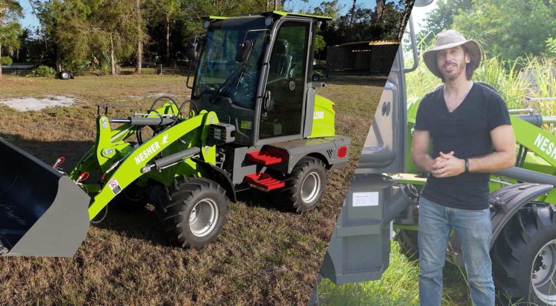 When a 40-foot container rolled up to my property and the doors swung open, I finally got to meet a machine I’d only last seen half-finished on a factory floor in China. Sitting up front, nose practically pressed against the container doors, was my new 10,000-plus-pound (4,700 kg) electric tractor: the NESHER L3000 wheel loader.