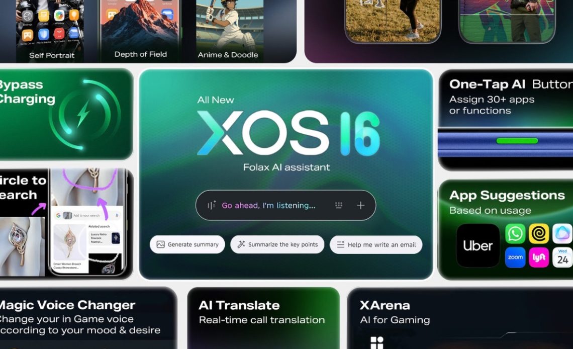 On the productivity side, XOS 16 leans heavily on AI. Features like One-Tap FlashMemo can turn quick notes into actions such as events, calls, or routes. Tools like Ask Folax and Mind Hub help store and organize ideas, while AI Writing suggests improvements for messages. The system also learns usage patterns over time and surfaces apps or suggestions through a quick AI panel.