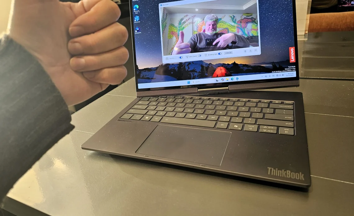 The ThinkBook Plus Gen 7 Auto Twist may be a mouthful to say, but the concept is a simple one: it’s a laptop that can recognize you and swivels itself to face you.