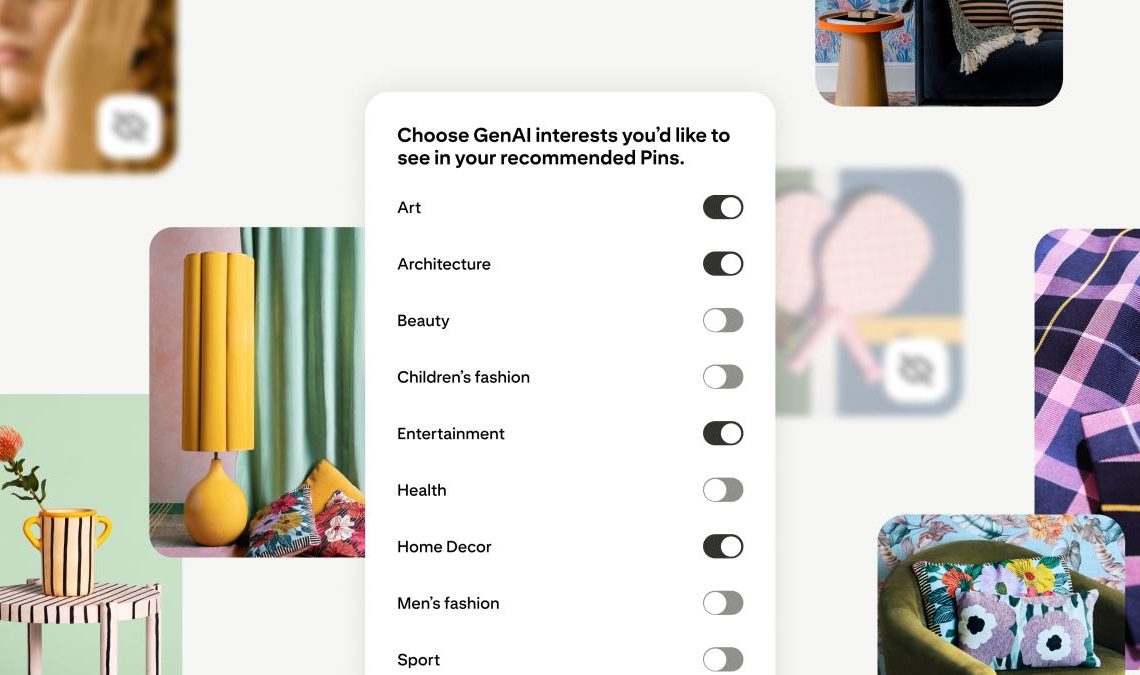 Here, users will be able to configure whether they’d like to see less GenAI content in certain categories that are prone to AI-generated imagery, like beauty, art, fashion, and home décor. Pinterest said it will introduce more categories in the future, based on user feedback. Plus, if users want to modify their settings, they can do so at any time.