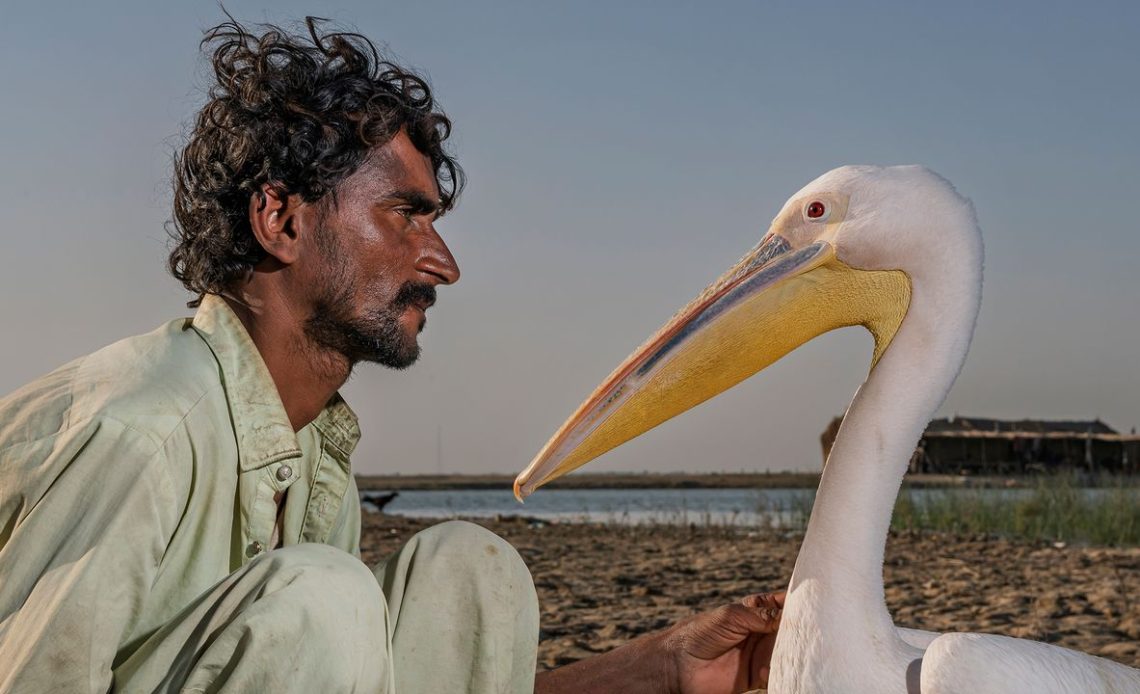 The image portrays Ali Kasghar, one of the last masters of an ancient technique practiced by the Mohana people, often referred to as the “bird people” – a fishing community who have lived for generations on the waters of Lake Manchar, Pakistan’s largest freshwater lake, located in Sindh Province.