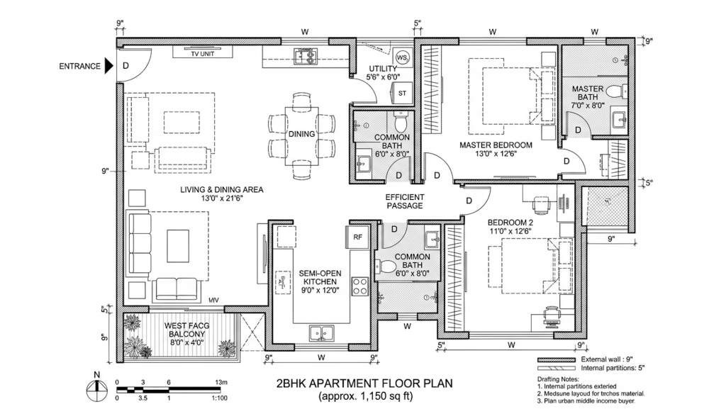 A restaurant does not function like an apartment. An office does not function like a villa. A layout for a compact urban buyer should not feel like a luxury family product.