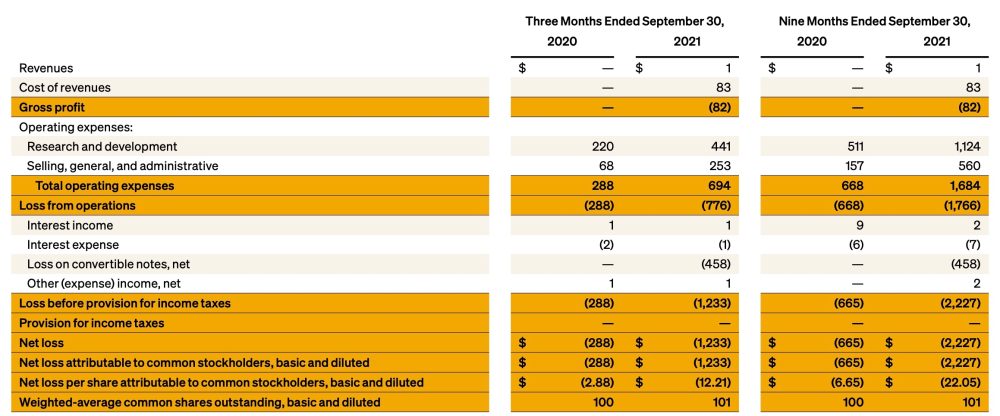 When it comes to the financials, Rivian disclosed that it generated $1 million in revenue from delivering its first few R1T electric pickup trucks, but it lost $82 million making them.