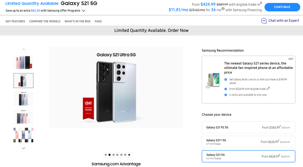 Samsung’s official US store has removed the Galaxy S21 Ultra from the listing, leaving behind options for only the Galaxy S21 and S21+, along with the newly launched Galaxy S21 FE. Normally, if the phone was simply out of stock, it would remain an option on the listing and just be marked out of stock. This is a pretty clear sign that Samsung is going to discontinue the Galaxy S21 Ultra.