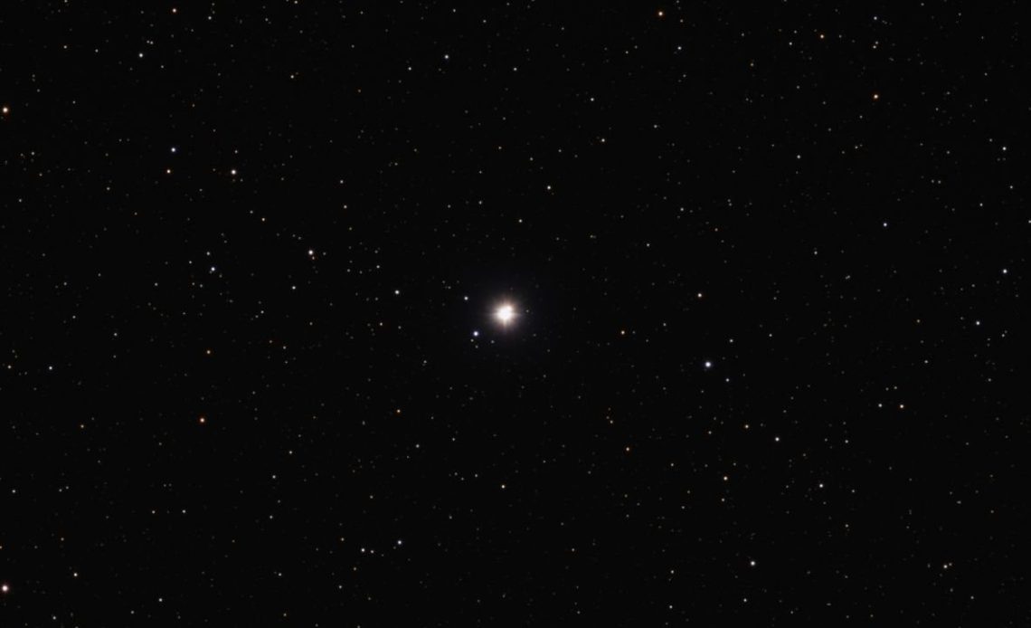 From Earth, Eta Cassiopeiae looks like a bright point of light in the night sky, but it’s really two stars locked together in an endless orbital waltz, circling a shared center of gravity once every 472 years. The larger of the pair is a G-type star just a smidgen more massive than our sun, and its smaller partner is a K-type star which weighs in at just 57% of our sun’s mass.