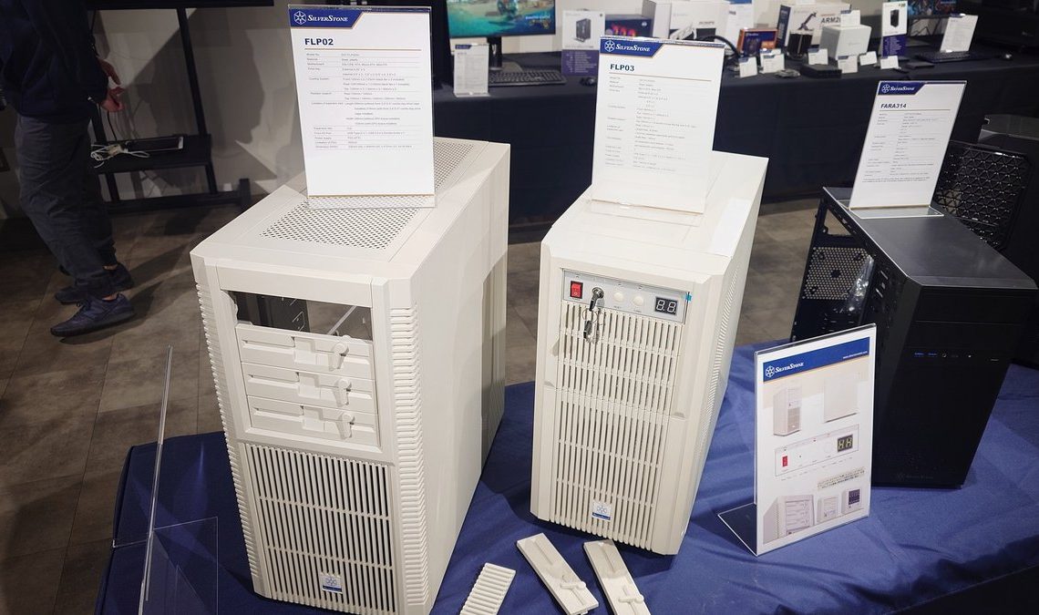 As Tom’s Hardware notes, the FLP03 case seems otherwise identical to the FLP02, sacrificing some internal 3.5-inch storage options and cooling fan space to shrink the case vertically. It’s “just” 456mm tall, compared to 494mm for the FLP02 (17.95 inches and 19.45 inches, respectively). The demo unit was showing off the older design’s physical lock, switch, and LED numeral display.