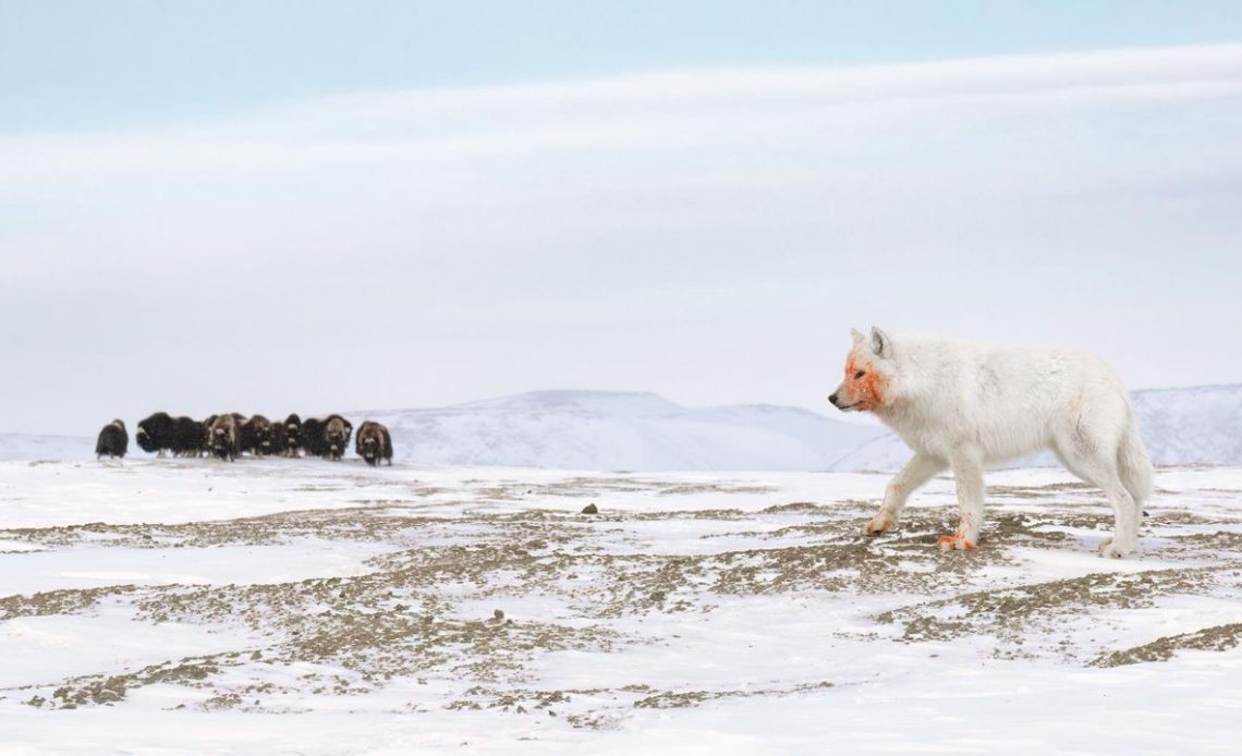 And explains, “Arctic Wolf whose face bears witness to what happened just a few moments earlier.