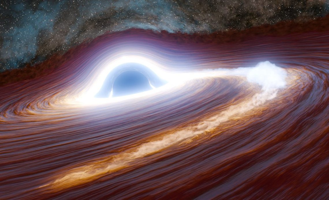 TDEs occur when stars wander too close to black holes. The immense gravity surrounding black holes generates strong tidal forces that simultaneously squash and stretch these stars, creating strands of “stellar spaghetti.” This stellar pasta twists around the black hole like spaghetti around a fork, forming a swirling flow of gas and dust known as an accretion disk that gradually feeds the cosmic titan. However, black holes are messy eaters, and some of this ex-stellar matter is blasted out from around them in parallel jets.