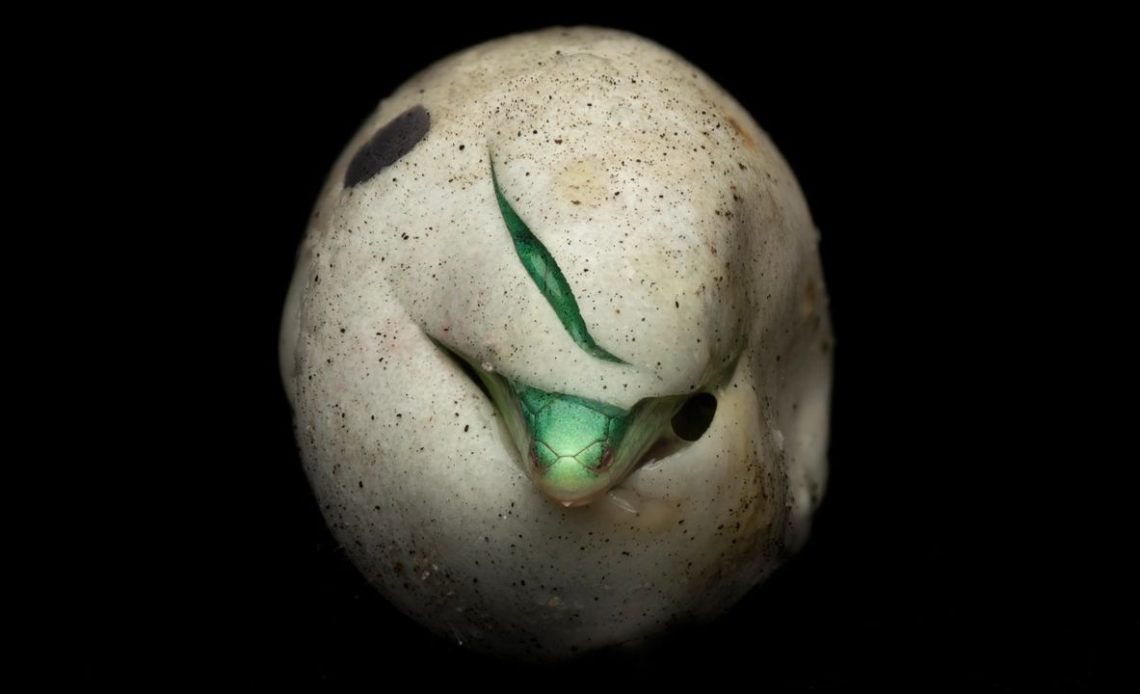 “Knowing the likely timing from when the egg was laid, I checked each morning in hope of capturing this precise moment,” Peters explains. The dedication required is staggering. Reptile eggs can take weeks to hatch, and the actual moment of breakthrough lasts mere seconds. Miss it, and you’ve missed your shot entirely.
