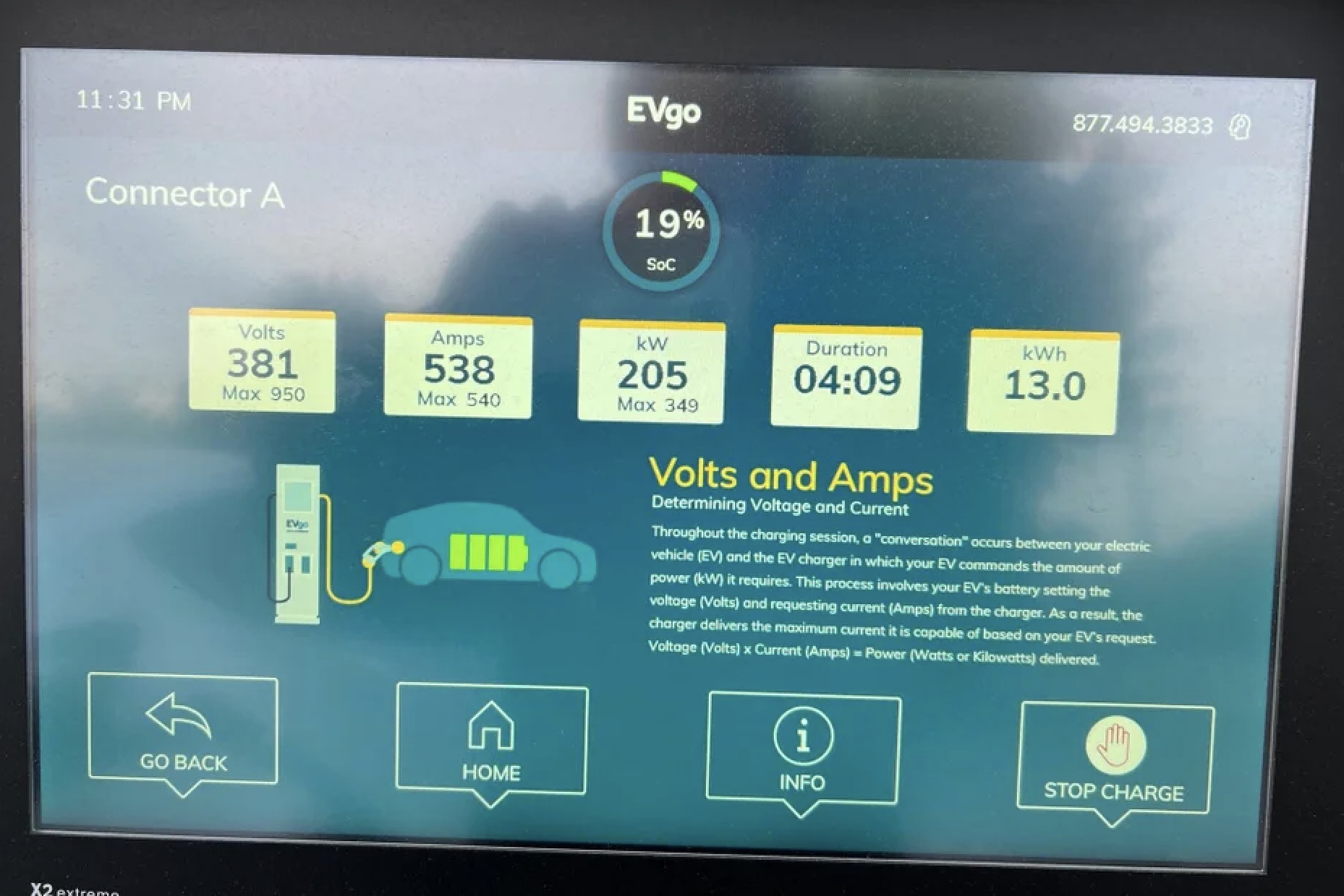 As you can see, it charged at 205 kW at 19% state of charge, and it settled at just over 100 kW when passing 50% state of charge. It’s not clear how the adapter is doing better than its rated capacity when it was announced. It could be a software update after further testing.