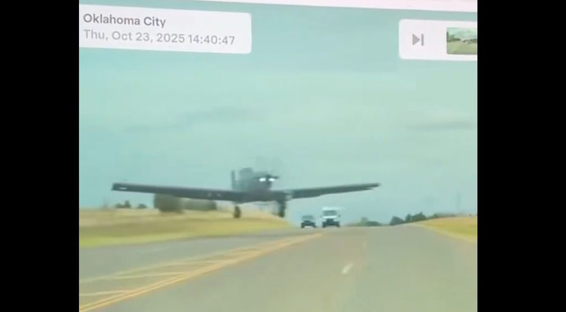 Before coming down in a field, the plane flew extremely close to a highway, narrowly avoiding several cars. The moment was caught by a Tesla’s internal dashcam: