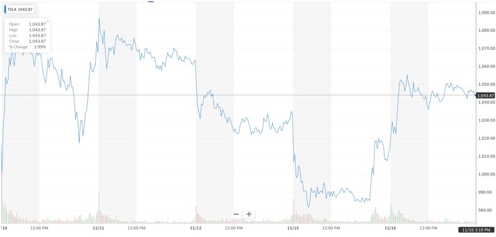 Since Musk started selling, the stock briefly dipped below its new $1 trillion dollar valuation, but Tesla’s stock (TSLA) is up 3% today – solidifying the company’s $1 trillion market cap: