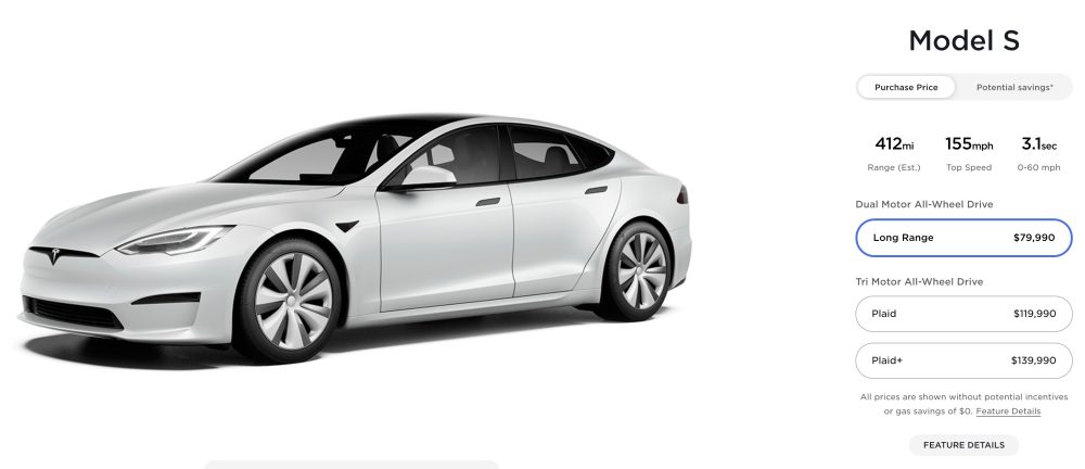 Model S now starts at $80,000 before incentives and Tesla got rid of the ‘Performance’ version to replace it by ‘Plaid’ and ‘Plaid+’: