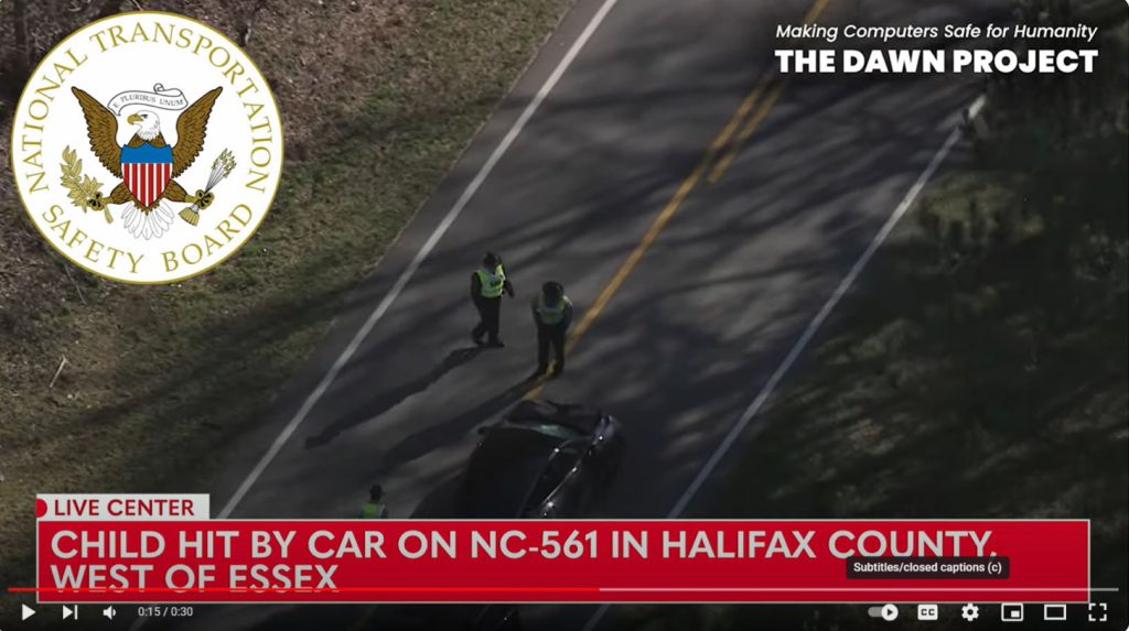 The Dawn Project seems to have quickly complied with the letter, as its youtube video now has a large, conspicuous blur visible for roughly half of its runtime, obviously covering up the illicit use of NTSB’s logo: