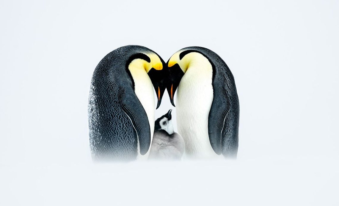 This year’s overall winner is a passionate wildlife photographer from Ontario, Canada. Thomas Vijayan has been awarded the Grand Prize for the image Emperor Penguin Family – a heartwarming portrait of a chick nestled within the embrace of its devoted parents amidst the icy Antarctic expanse.