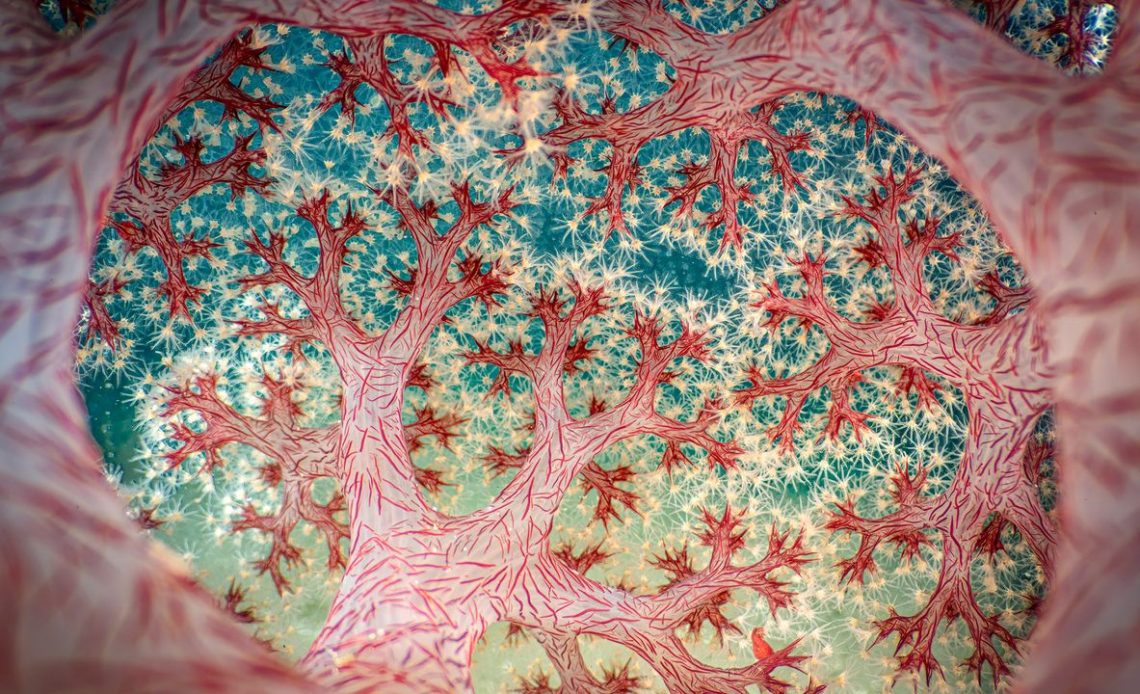“Inside-out view of a cauliflower soft coral. Named for its characteristic appearance that resembles a cauliflower, with numerous small, rounded, bump-like polyps that give it a puffy texture. This unique perspective was made possible by the Nauticam EMWL, an underwater version of the probe or insect eye lens.”