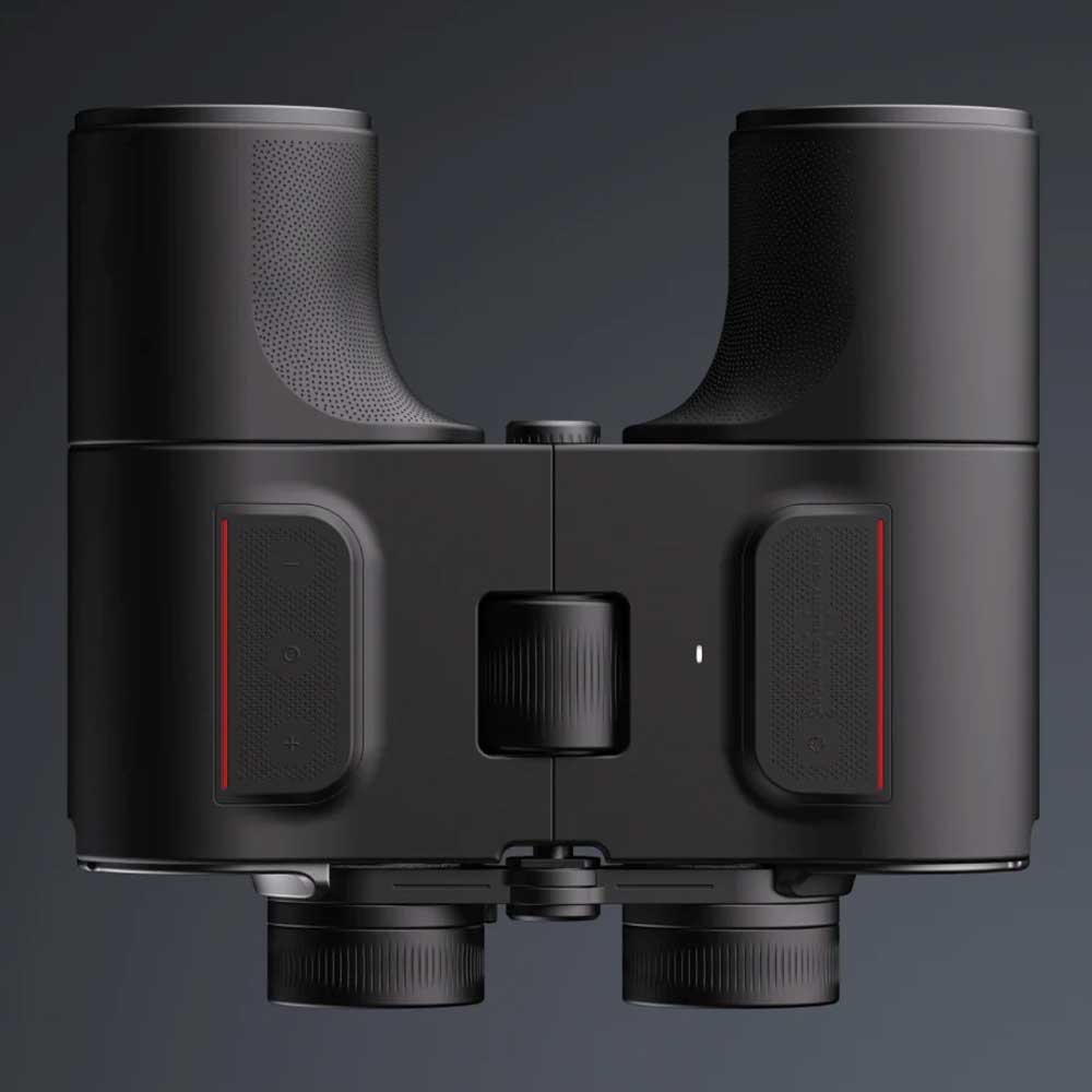 The binoculars have a red augmented reality (AR) overlay that can identify over 1000 astronomical targets and guide you through the night sky. It also has a database of over 1 million terrestrial targets, like mountains and hiking trails, that can aid you when using them on outdoor adventures.