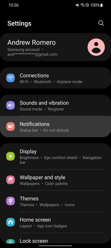 - In the Settings, find and tap Notifications.
