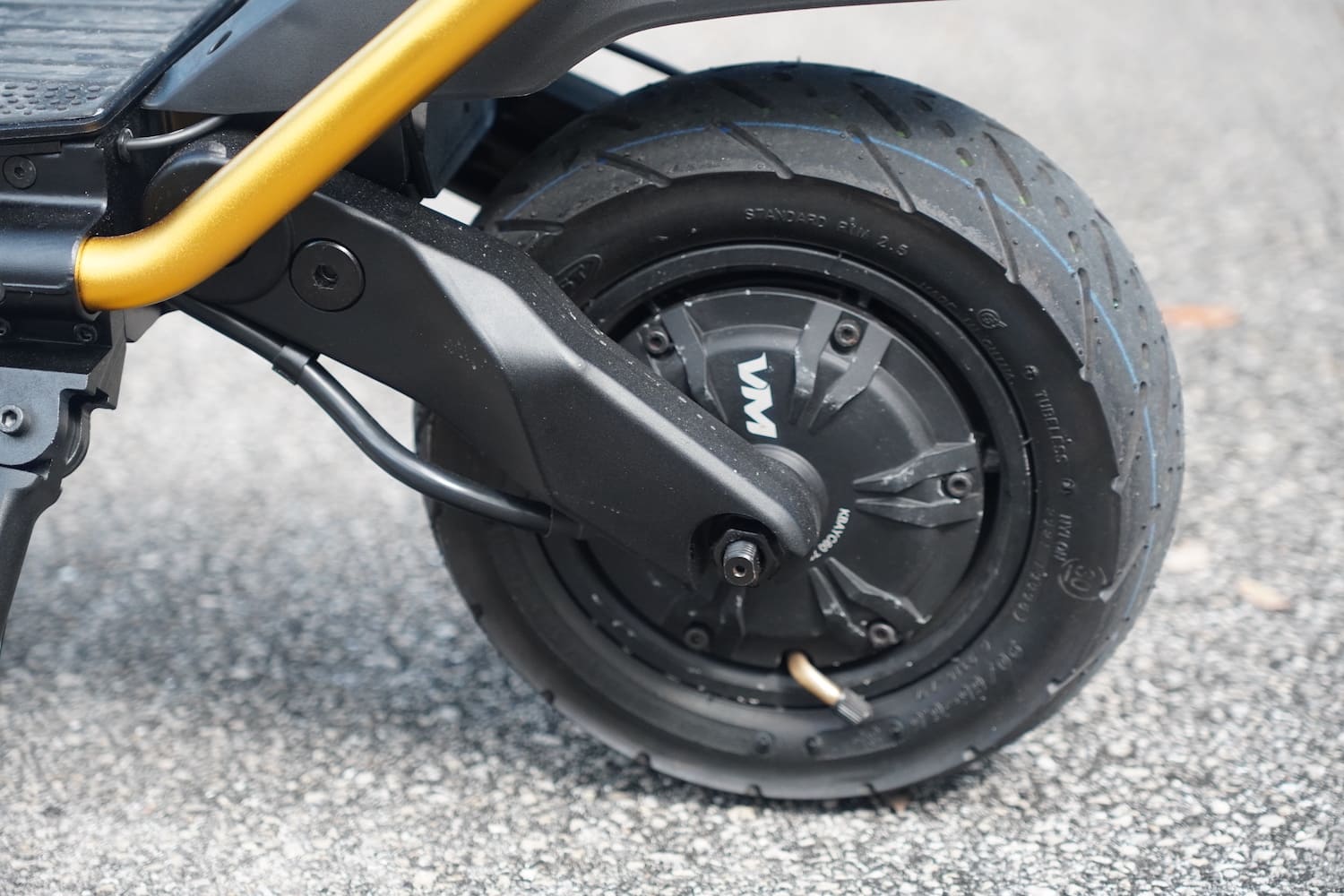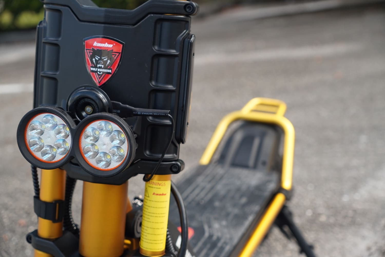 The scooter I tested came with street tires, which was great considering I mostly ride streets. But of course, I did a bit of off-road testing as well to see what it could do. The tall ground clearance and hydraulic suspension make it great for bumpy paths, and the powerful lights actually light up the ground in front of you instead of just being little dots of lights to tell cars that you exist.