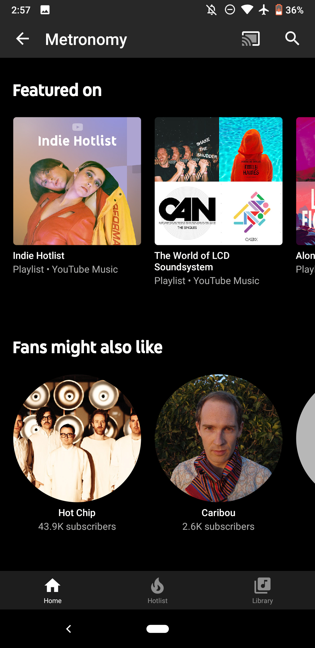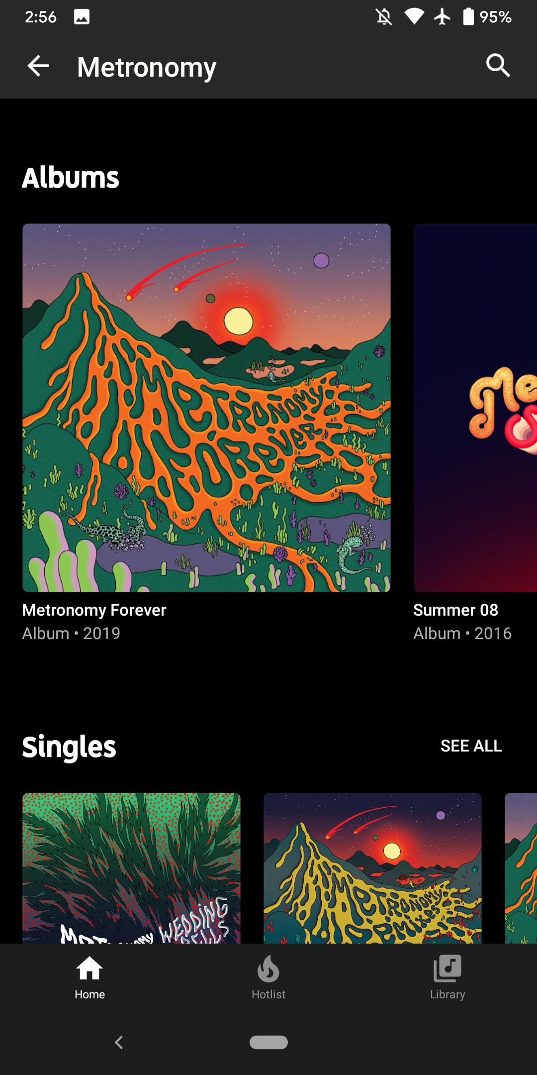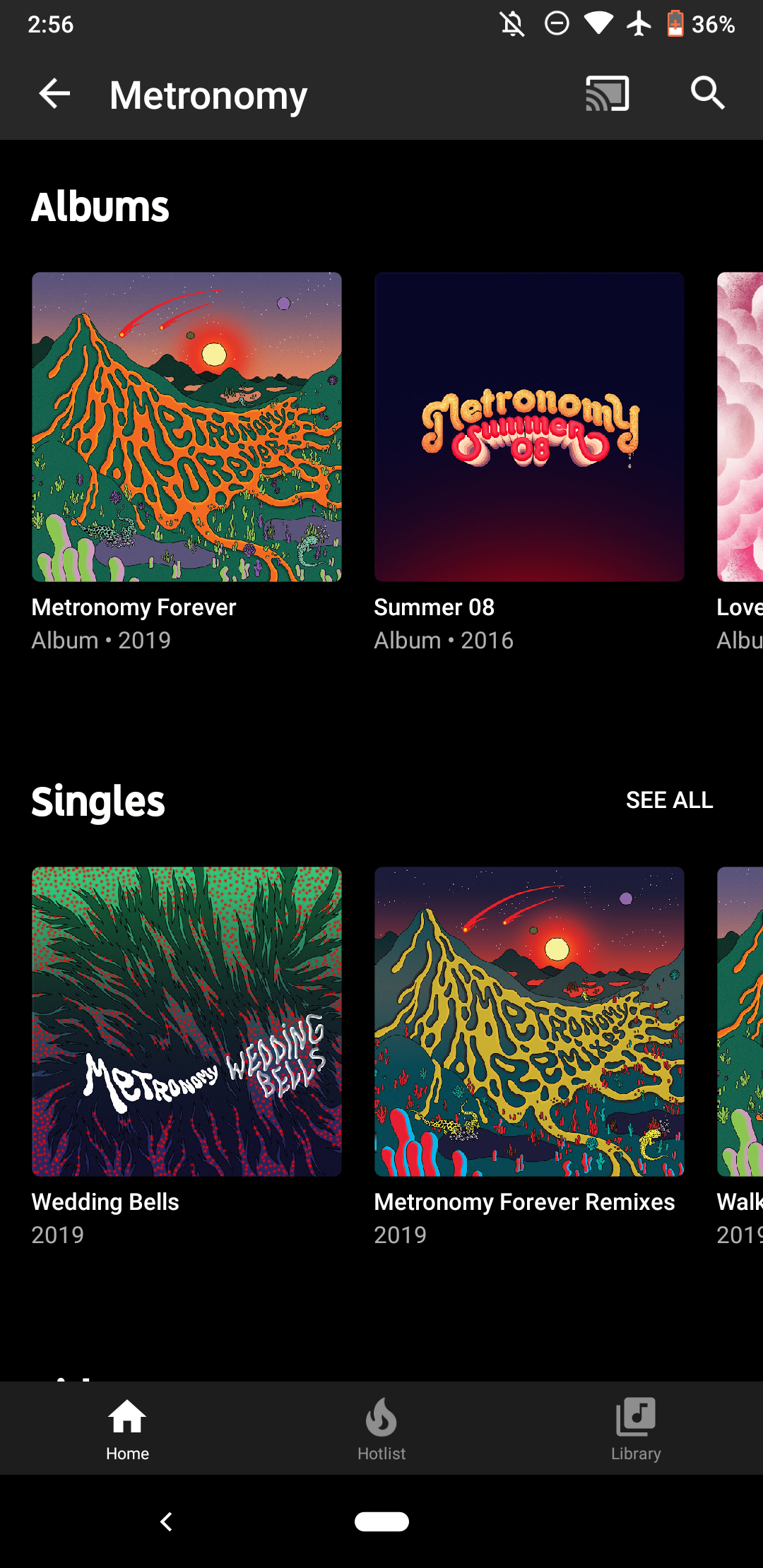 “Albums” feature significantly larger cover art so that only one full work is listed at a time. This makes for a beautiful browsing experience. Carousels for “Singles,” “Videos,” “Featured on,” and “Fans might also like” are unchanged.
